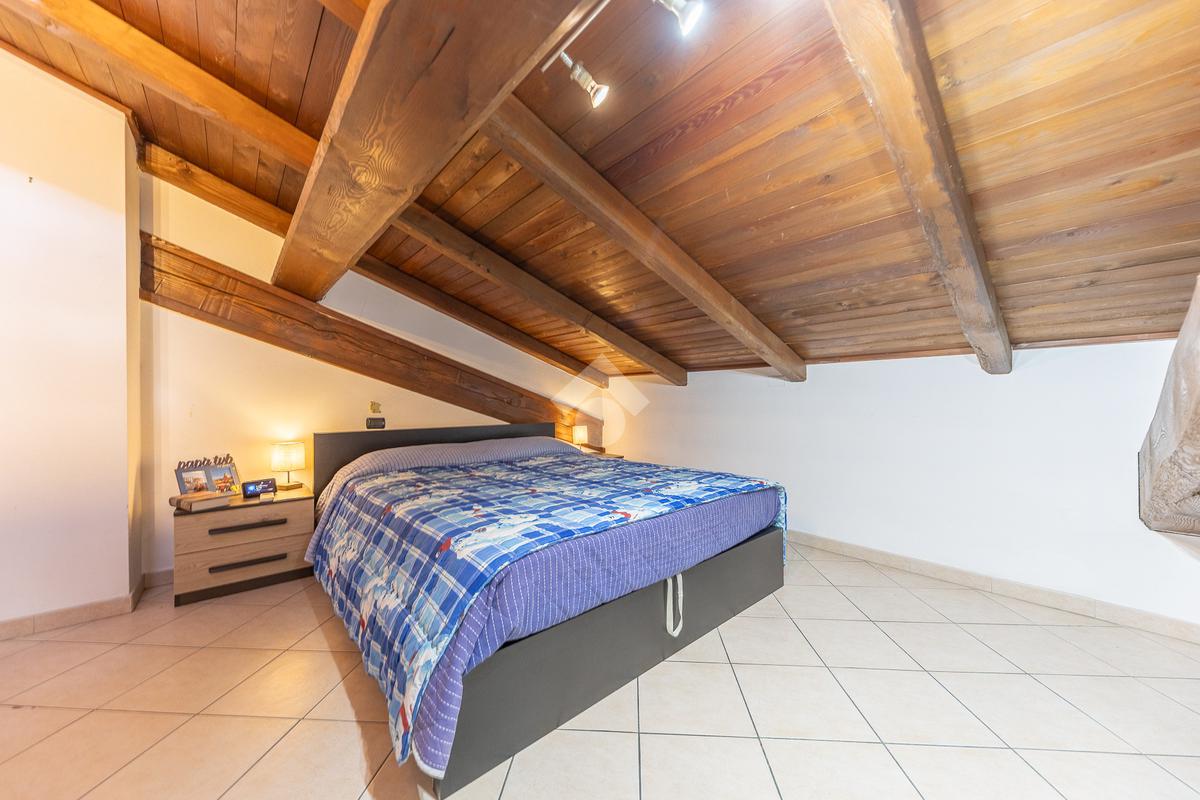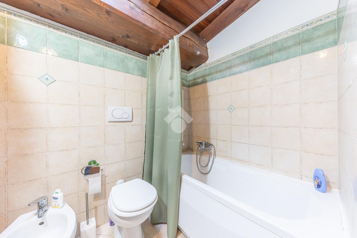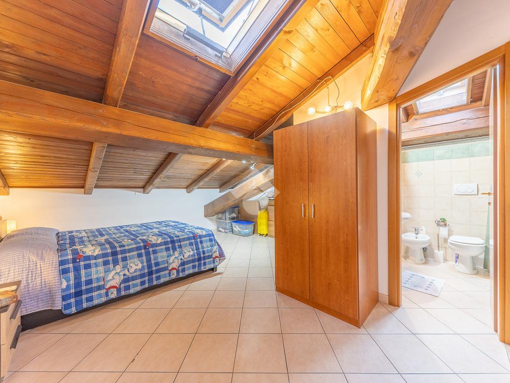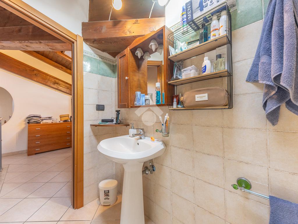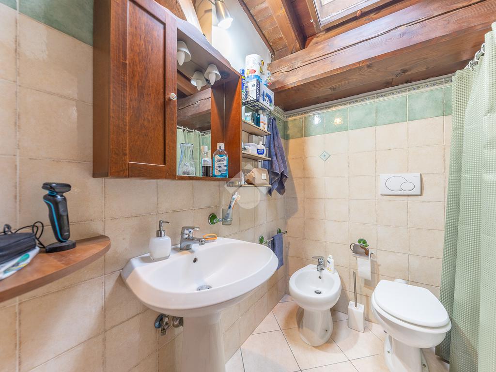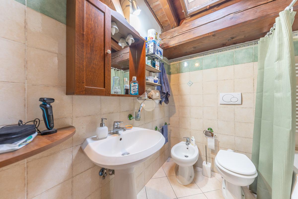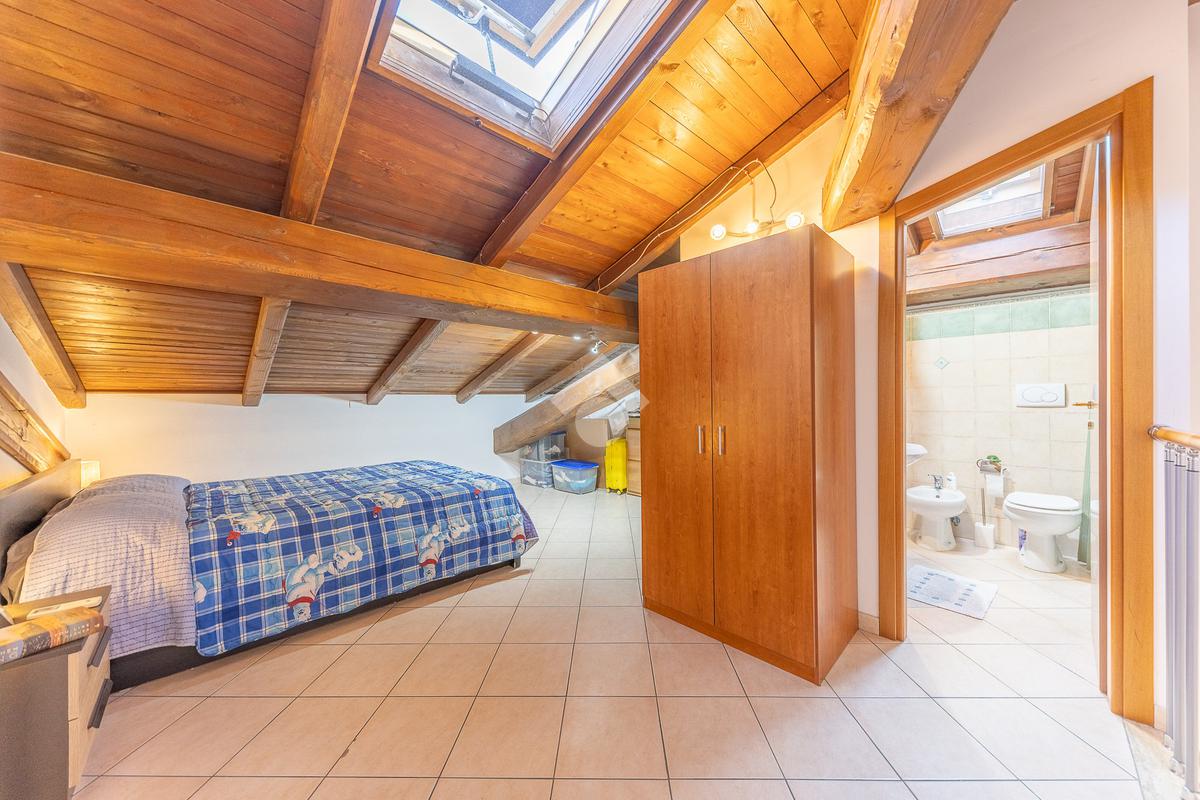 Al piano superiore mansardato abbiamo una bella camera matrimoniale con finestra basculante, e il bagno finestrato con vasca/doccia.