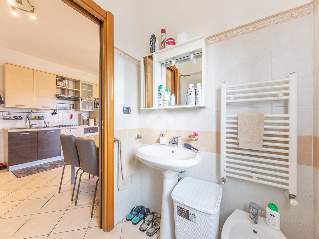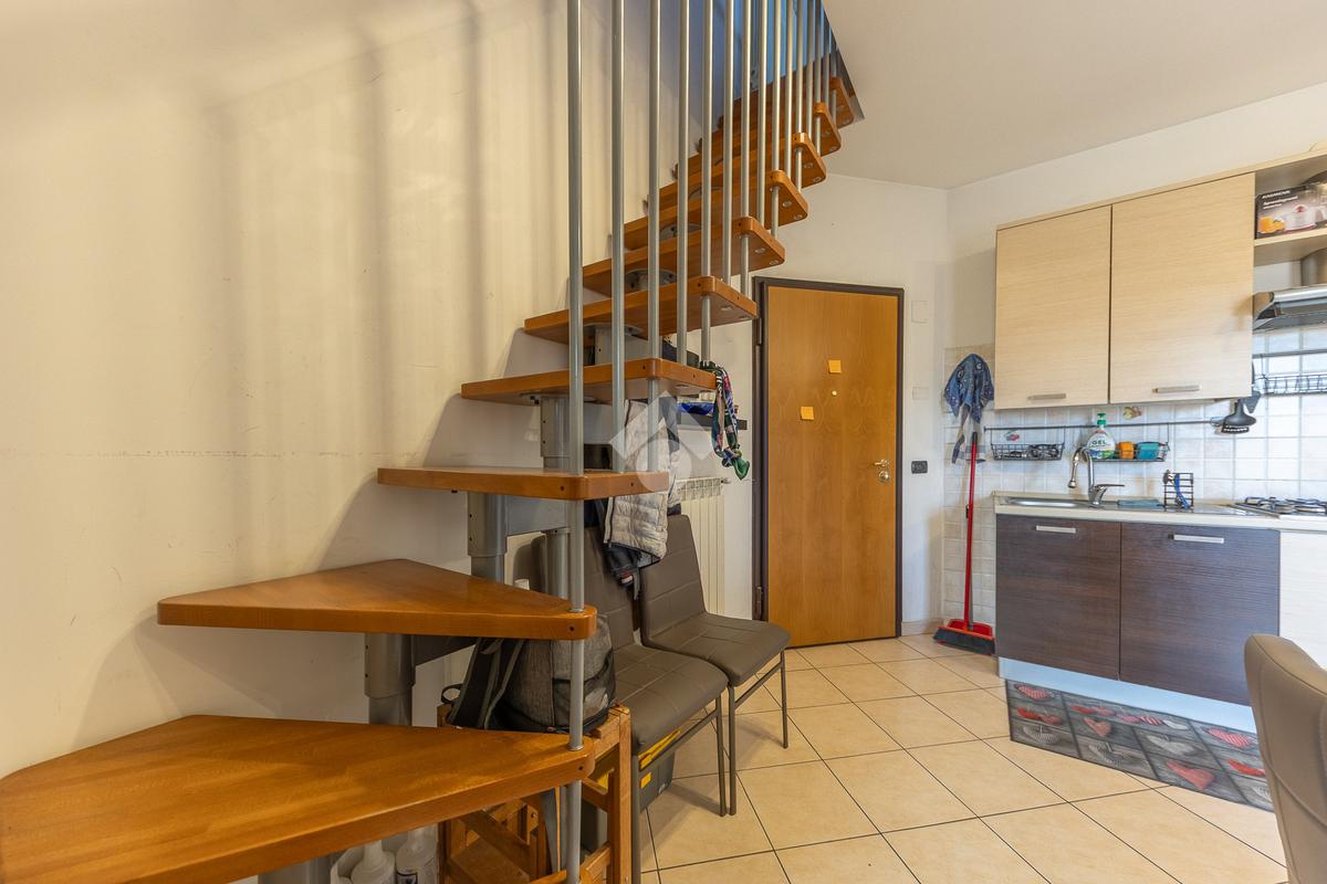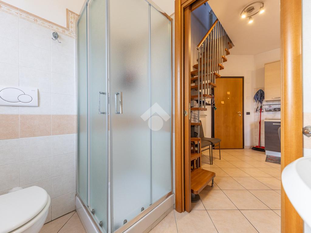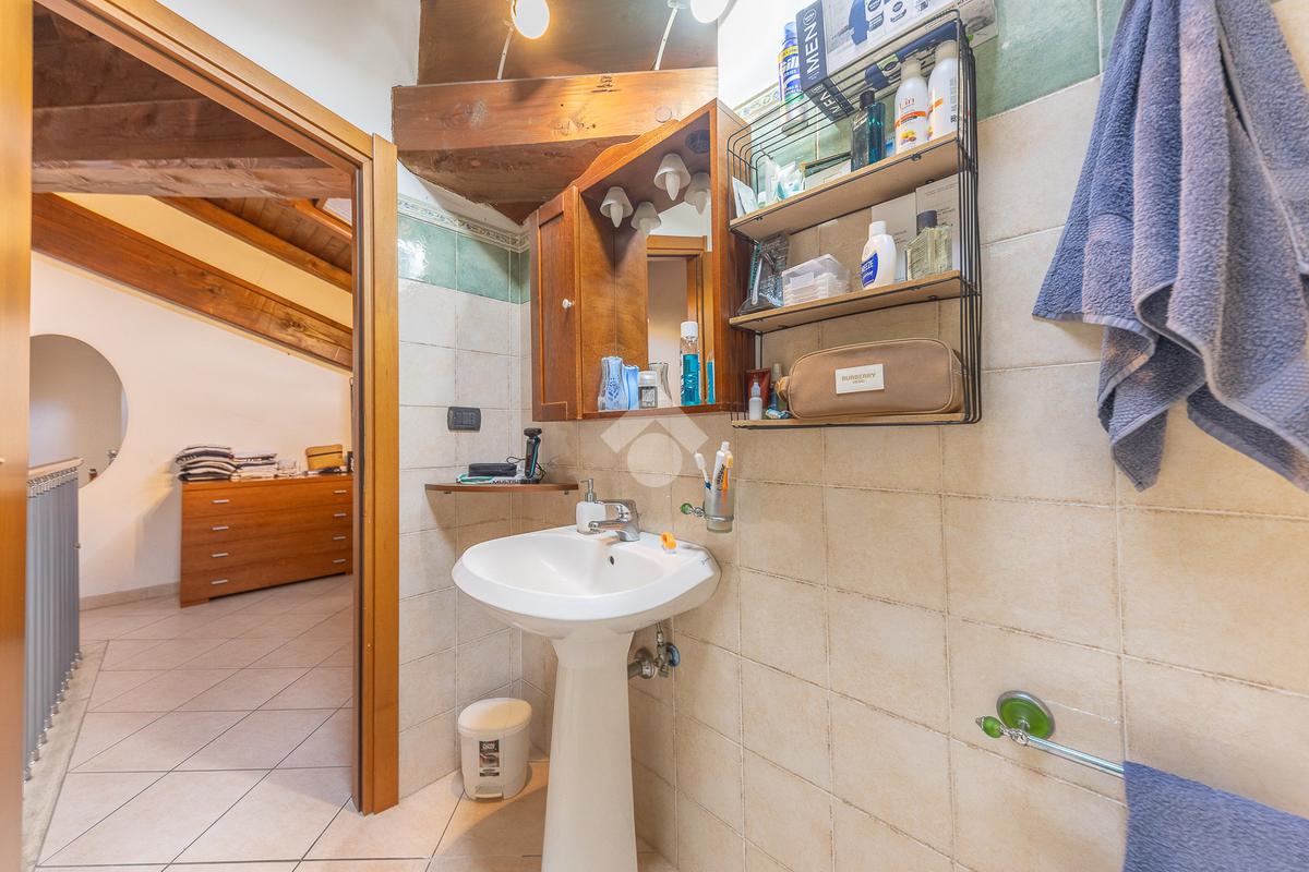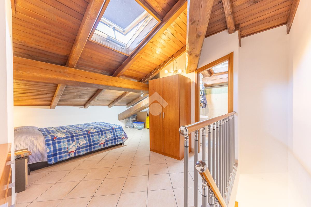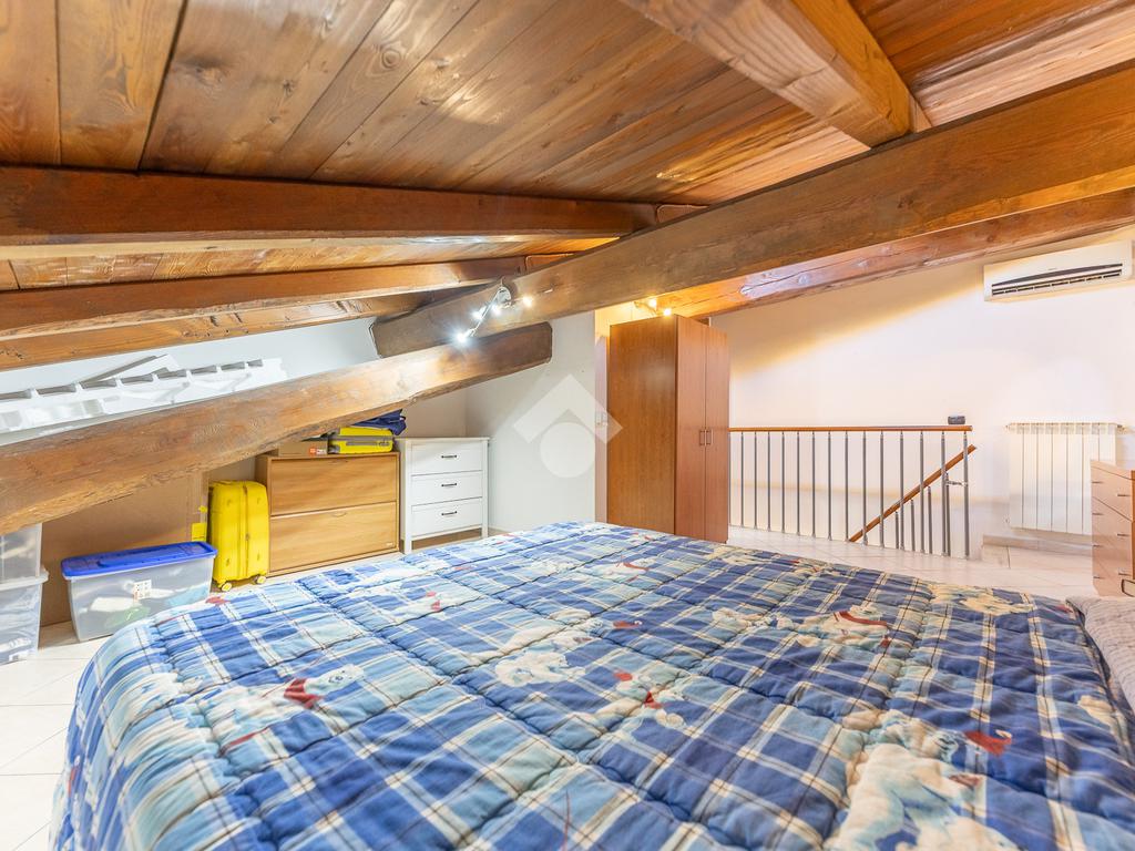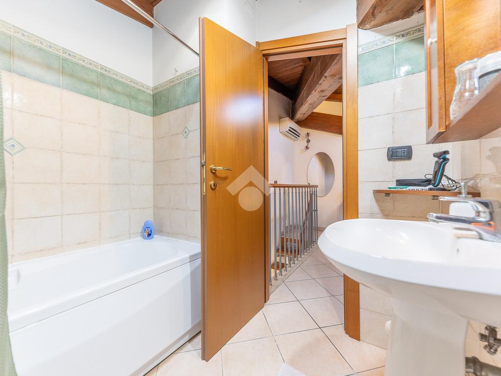 Al piano superiore mansardato abbiamo una bella camera matrimoniale con finestra basculante, e il bagno finestrato con vasca/doccia.