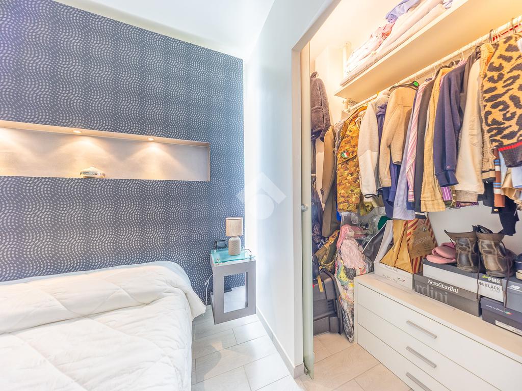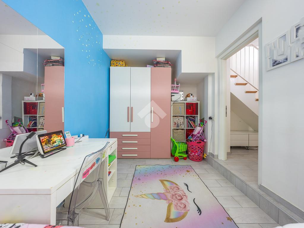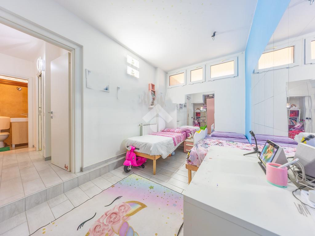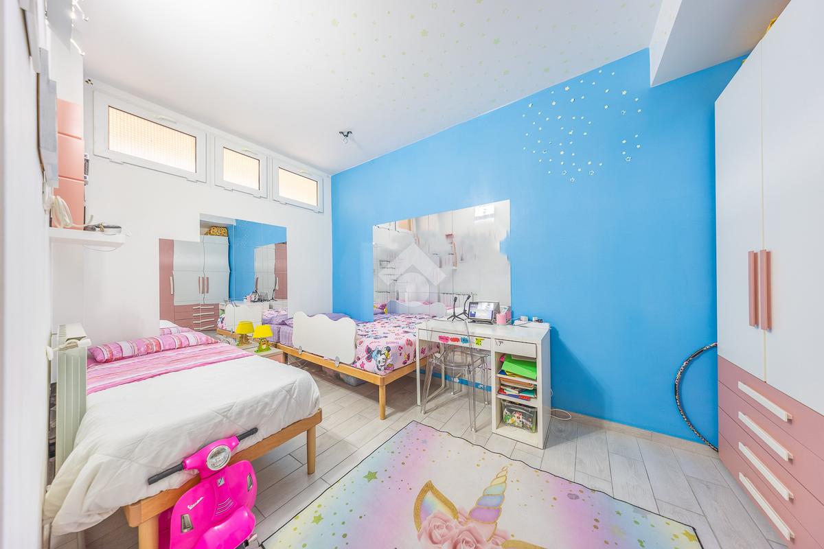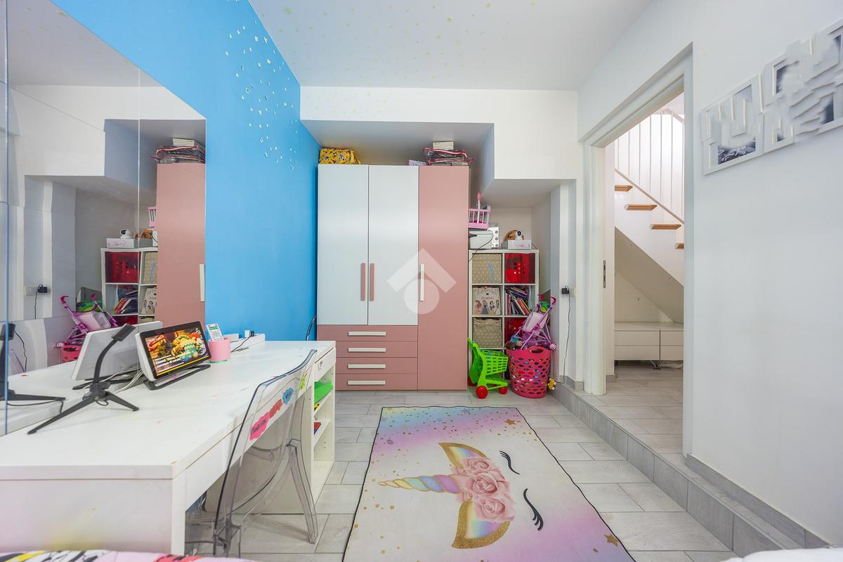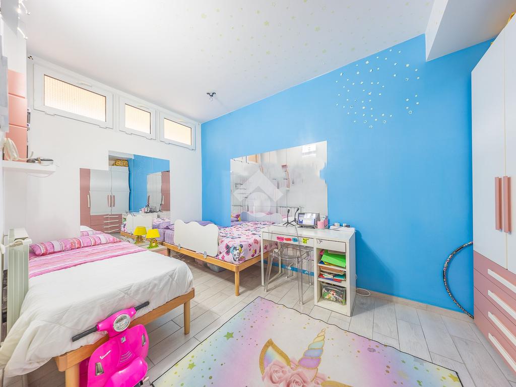 Al piano inferiore abbiamo la camera matrimoniale con cabina armadio,un altra camera bella grande e il bagno finestrato con doccia.